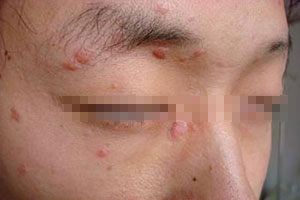 4、易发面部:颜面、前额和手背,也可发生在腕和膝部。大多对称,数目不定。