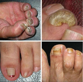 3、引起并发症:灰指甲严重时可引起疼痛和不适,指甲一旦受到各种外伤,细菌易于长驱直入,从而引发甲沟炎、甲床炎、手指脓皮病等并发症,使病人发生丹毒或蜂窝组织炎等全身症状严重的疾病。