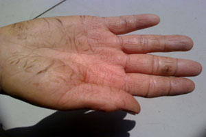 3、影响日常生活:人们一旦患上手癣,有些工作就会受到干扰,指甲长在手足的末端有保护的作用,一旦患病,手足很容易会因为碰撞受到伤害,手脚使用方面也会有很多不便。