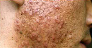 8、恶病性痤疮症状:皮肤损害为小米粒至蚕豆大小的青红色或紫红色丘疹,脓疱或结节,质地较软,含有脓液或血液,长久不愈,愈后遗留小瘢痕,可转变为疽疖痈,此型多见于体质虚弱者。