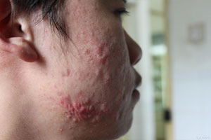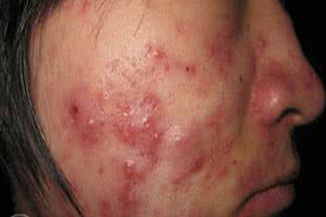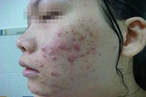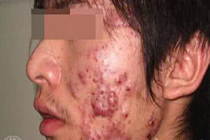 6、聚合性痤疮症状:它也是皮肤损害比较严重的一种,皮肤的损害呈现多种形态,有很多的粉刺、丘疹、脓疱、囊肿、结节及窦道,瘢痕、硬结密集发生。