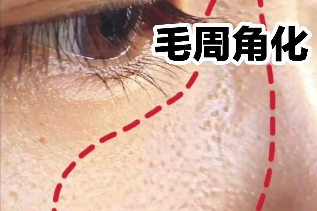 毛周角化病即毛囊角化症,俗称“鸡皮肤”,由于维A酸缺乏导致皮肤过度角化的现象。最常发生于手臂和腿部之正面或外侧,常被误以为是粉刺、青春痘或是没洗干净。最常出现的部位,是在上臂外侧、大小腿、颈部,甚至整个背部、有些人腮帮子皮肤会颜色较深、也较粗糙,虽然颗粒状不太明显,但也属“鸡皮肤”。